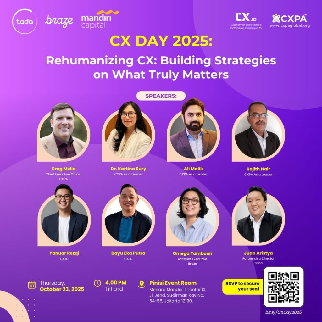 You’re invited to an exclusive CX Day 2025 celebration, an intimate offline evening for CX leaders and practitioners to connect, learn, and share over dinner, hosted by CX.ID, CXPA, Braze, and Tada.